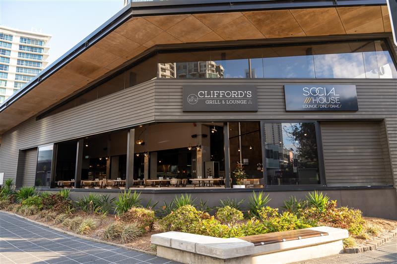 サーファーズパラダイスの中心にある「Clifford’s Grill & Lounge」は、オープンキッチンの臨場感が魅力の活気あふれるレストラン🍴