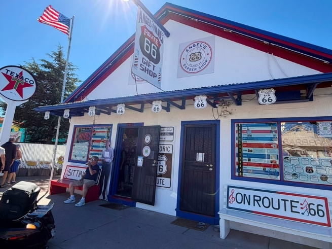 ルート66 ハックベリー ジェネラルストアで休憩・写真撮影 ~古き良きアメリカを残し、まるでタイムスリップしたかのような不思議な体験を~ 映画「カーズ」の舞台となった ルート66の宿場町セリグマンで休憩(約20分) ★ルート66を復活へと導いたエンジェルさんのギフトショップに立ち寄り (休業の場合は他のお店にご案内) |