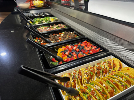 ランチは各国料理が楽しめる人気の食べ放題ビュッフェ。