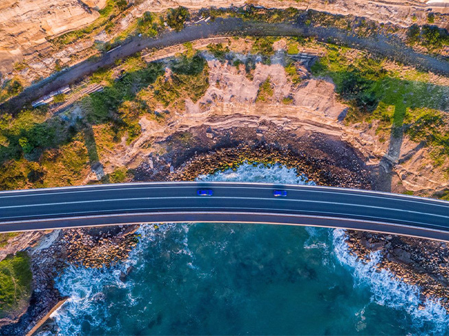 その後、海の上を走るような絶景ロードとして知られる名所シークリフブリッジをドライブします🚌