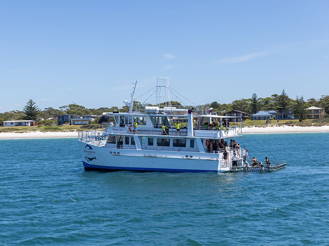続いて訪れるジャービスベイでは、透明度の高い海を舞台にしたイルカウォッチングクルーズを体験🐬