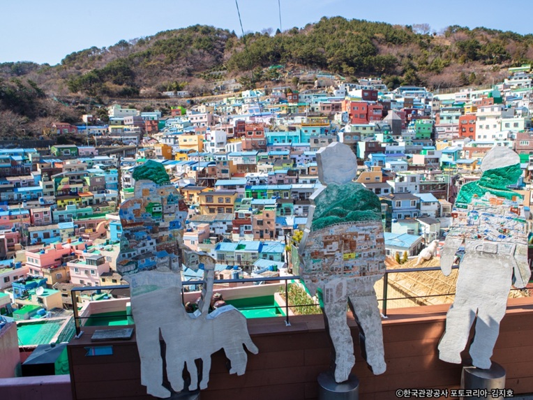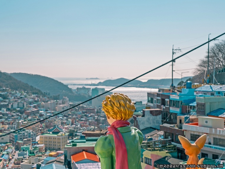 釜山の人気スポットを半日で巡る!甘川文化村散策+ダイヤモンドタワー+龍頭山公園+カントン市場+BIFF広場+チャガルチ市場【わくわくぷさん君(昼版)】