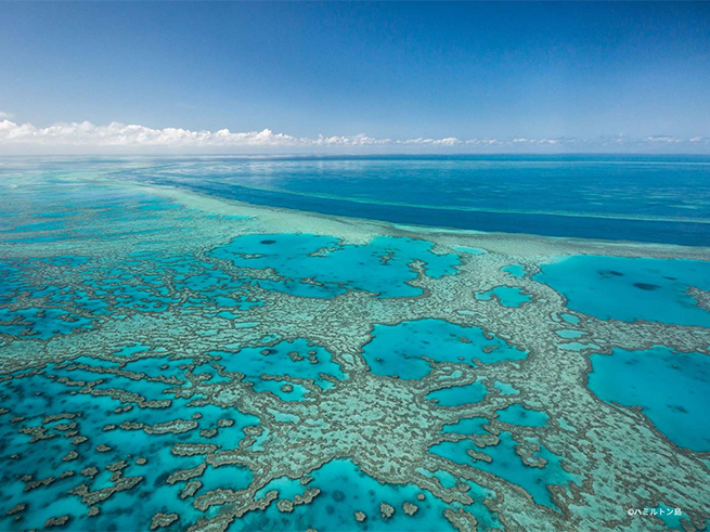 ■ ハミルトン島からハートアイランド・ポンツーンをヘリコプターで往復し、合計60分間の遊覧飛行でハートリーフ及び、ホワイトヘブンビーチとヒルインレットを含むウットサンデー諸島の有名な観光スポットを上空から眺めます。