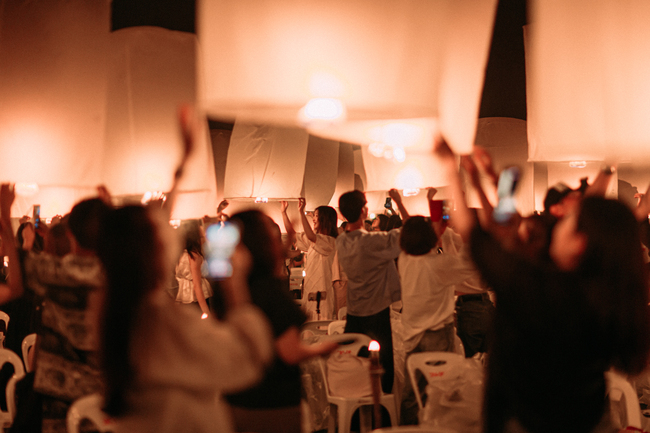 ランタン一斉上げエリアのお席へ移動 --------------------------------------------------- 舞台ショー、僧侶の説法、ランタンの上げ方など |