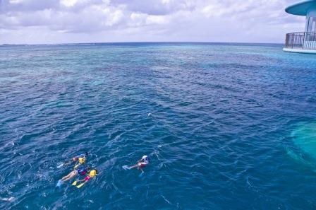シュノーケリングに必要な器材や餌付けの餌もすべて含まれ、ライフガードが丁寧にサポートします。シャワー、更衣室も完備。