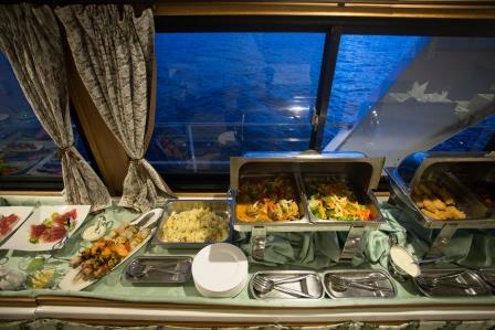 ロックアイランドの入り江で停泊し、船上でディナーをお楽しみいただきます。