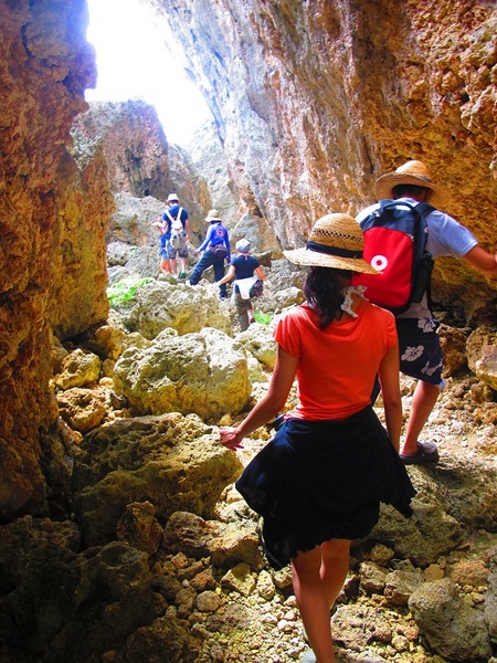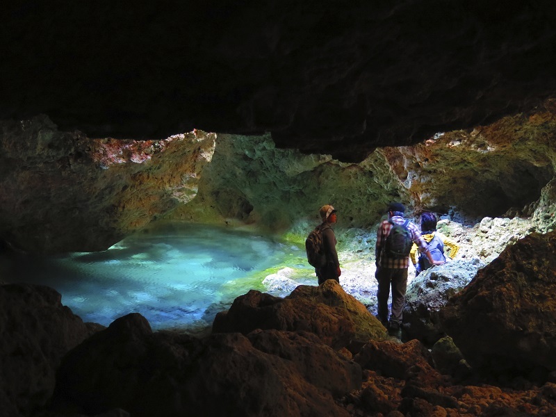 車で禁断の島付近まで移動し、麓のビーチまで下り坂25分のハイキング。洞窟内のクールプールで体を冷まし、天然プールにてシュノーケリング。帰りは上り坂を30分ほどハイキング。壮大な景色をご堪能下さい。