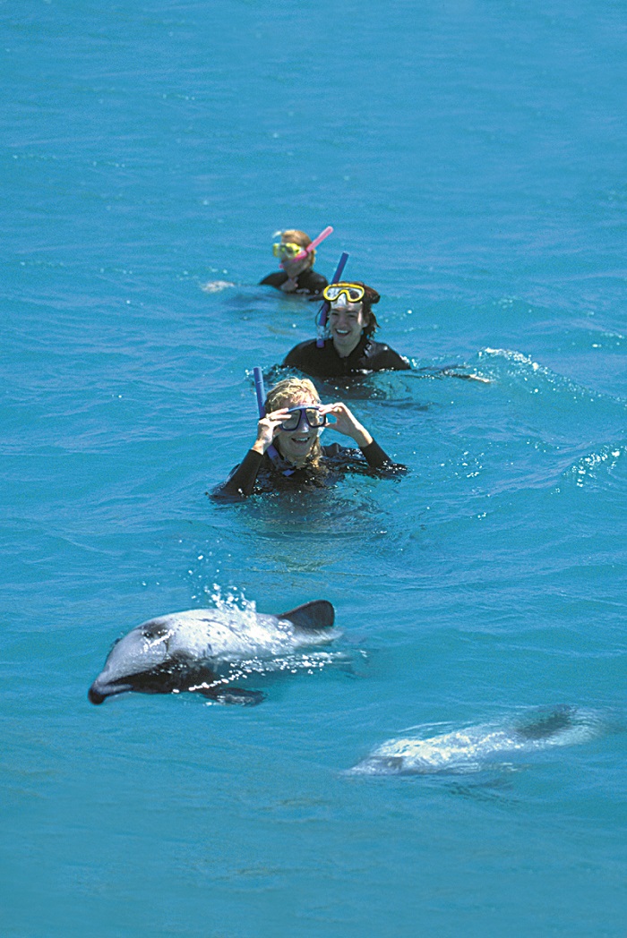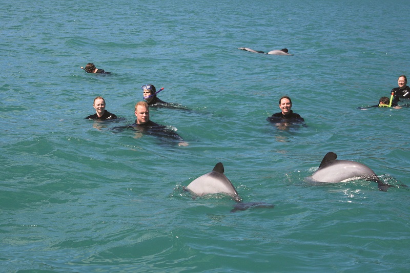 世界で最小で希少と言われる「ヘクターズ・ドルフィン」と一緒に泳いでみませんか?イルカは、季節を問わず、アカロア湾の入組んだ入江に頻繁にその姿を現します。イルカに間近に迫ることができるジェットエンジン搭載のカタマラン(双胴)船は、お客様そしてイルカにも最高の安全性を提供しています。