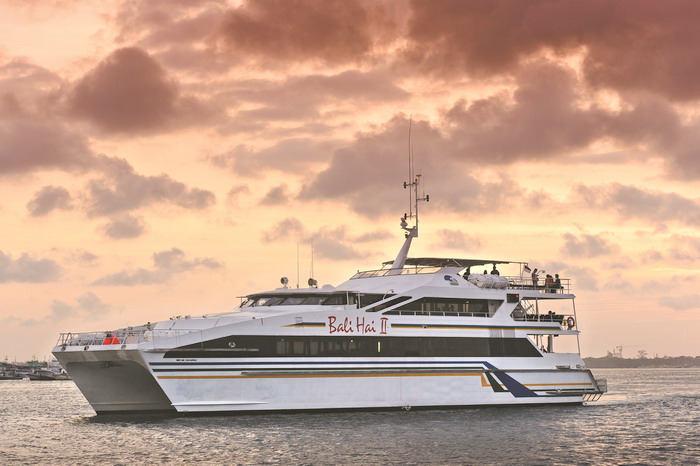 日没後は、ラグジュアリーなモーターカタマラン「Bali Hai II」でベノアハーバーを周遊。