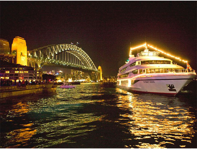 キャプテンクック・ディナークルーズ ハーバーブリッジやオペラハウス近辺航行中の夜景が必見です。 |