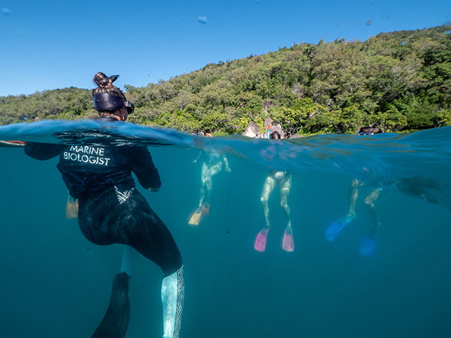 約35分間のシュノーケルツアーと自由時間 ※シュノーケルツアーにはシュノーケリング器材のレンタルが含まれております。ツアーに参加しない方は別料金で器材レンタルが可能です。 その他ビーチで泳いだり、レインフォレストのウォーキングコースを歩いたり、のんびりリラックスしたり・・・島での滞在を満喫してください。 |