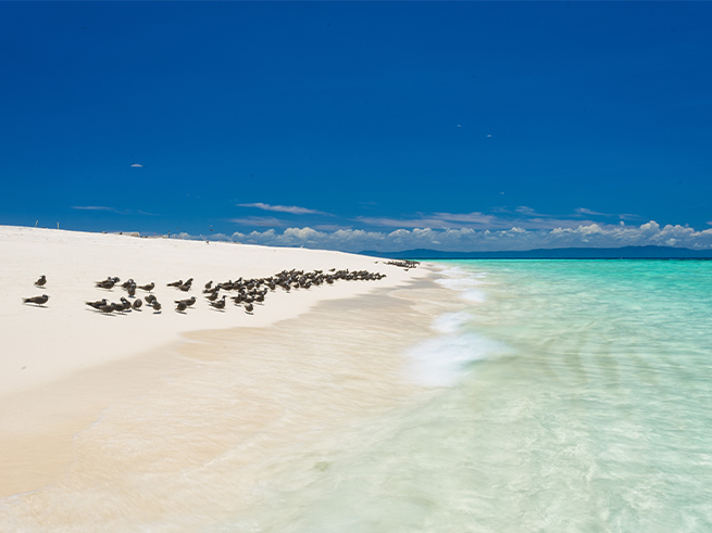 世界遺産グレートバリアリーフの中でも、透き通る海と純白の砂州、そして数多くの海鳥が集まる手つかずの自然が魅力の無人島です。