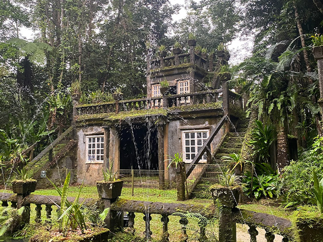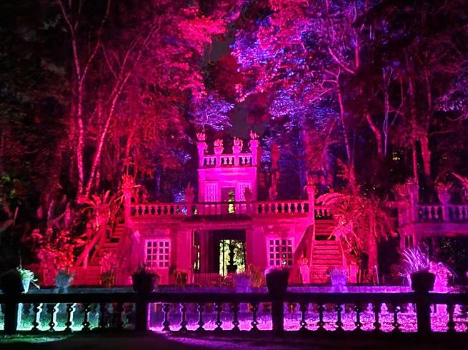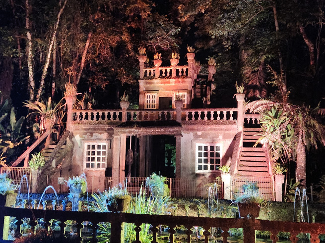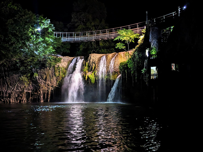 緑に包まれた石造りの建物、流れ落ちる滝、夜にライトアップされた幻想的な姿——。
