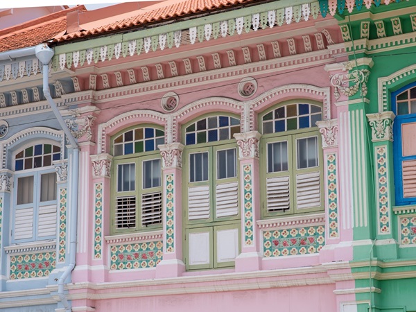 ツアーは、マレー系コミュニティの活気あふれるゲイラン・セライの通りや飲食店の訪問から始まります。その後、カラフルなジュウ・チャイアットとカトンの街をゆっくり散策。ここではヒップなカフェや歴史的なショップハウス、プラナカン文化の豊かな歴史と現代的な魅力に触れられます。特に、パステルカラーのショップハウスや細かな装飾が施された建物、華やかなプラナカンのタイルやモチーフが目を引きます。