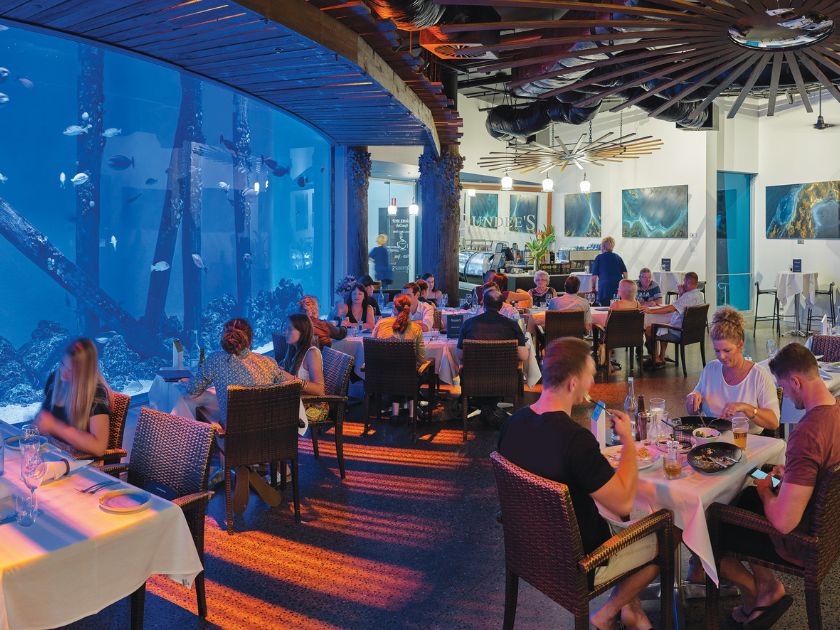 ツアーが終了したら、水族館併設の人気レストラン『スクワイヤーズ・ケアンズアクアリウム』にて巨大水槽を眺めながら優雅に2コースディナーをお楽しみください🍴