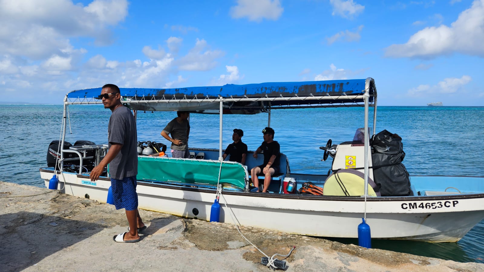 ボート乗船、出港(ボート移動片道約5分) シュノーケリングポイントまでの移動時間は、ボートで約5分です。 |