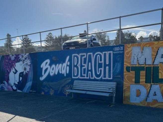 おすすめレストランでランチを楽しんだ後は、車で一休みしながらシドニー屈指の名所・ボンダイビーチへ移動🏝️