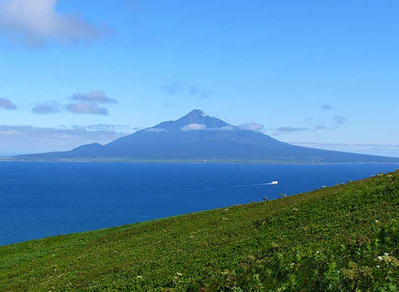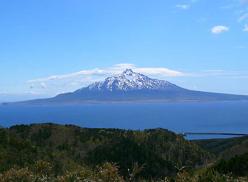 「日本百名山」、「花の百名山」などに選ばれている利尻岳は、標高1,721mの独立峰です。山頂の一番高いところから海に向かってゆるやかな裾野を広げる姿が、富士山そっくりなことから「利尻富士」とも呼ばれています。島全体がひとつの山のように見えるその姿は、まさに富士山が日本海に浮かんでいるかのよう。登山愛好者からの人気も高く、夏になれば多くの登山客が利尻富士を登るため、この地を訪れます。この利尻岳の全容を見ることができるベストスポットが日本最北の島である礼文島。海に浮かぶ利尻富士を一番間近に見ることができる陸地です。礼文島から見える利尻富士は頂きに雪をまとい、「北の名峰」にふさわしい姿を海の上に浮かべています。