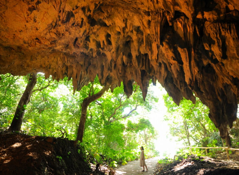 専門ガイドと巡るツアーでは、沖縄の人々が祈りを捧げてきた洞窟を抜け、威風堂々と佇む樹齢約150年の大主(うふしゅ)・ガジュマルの木を仰ぎ見るなど、ガンガラーの谷をゆっくり散策できます。さらには日本人のルーツという説もある20000年前の古代人・港川人の居住跡と考えられている洞窟の発掘跡を見ることもできます。