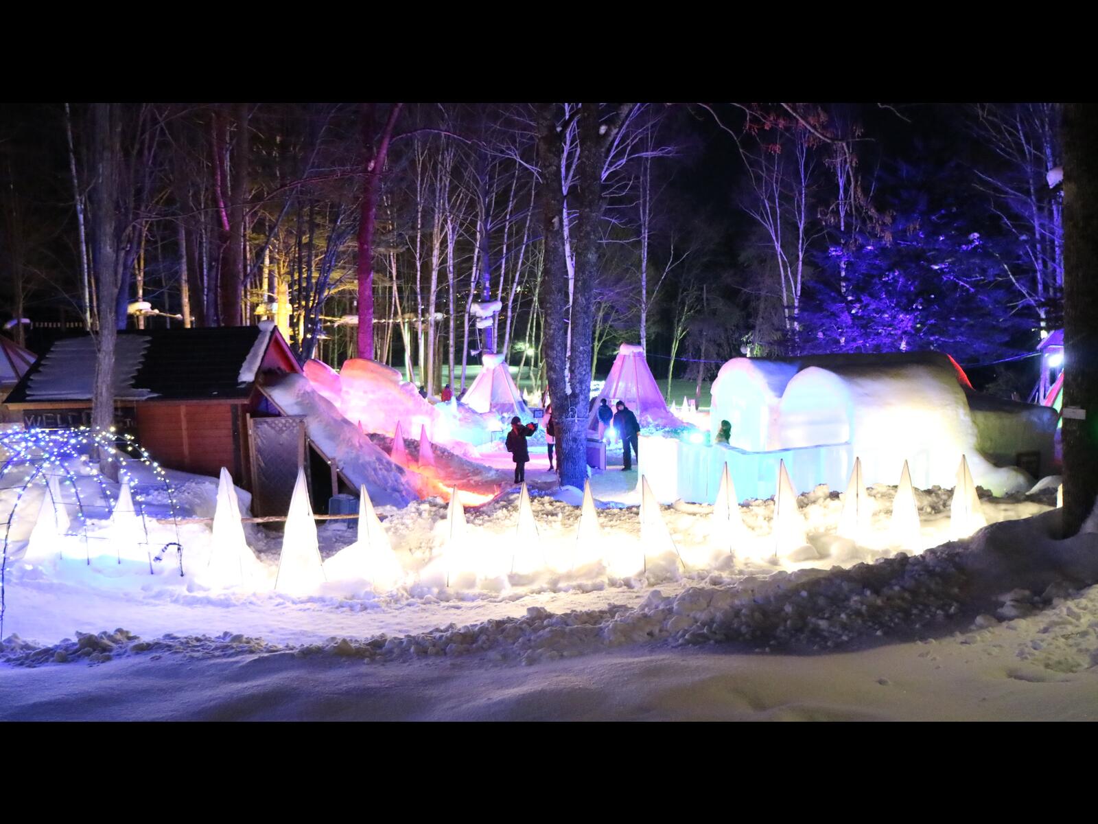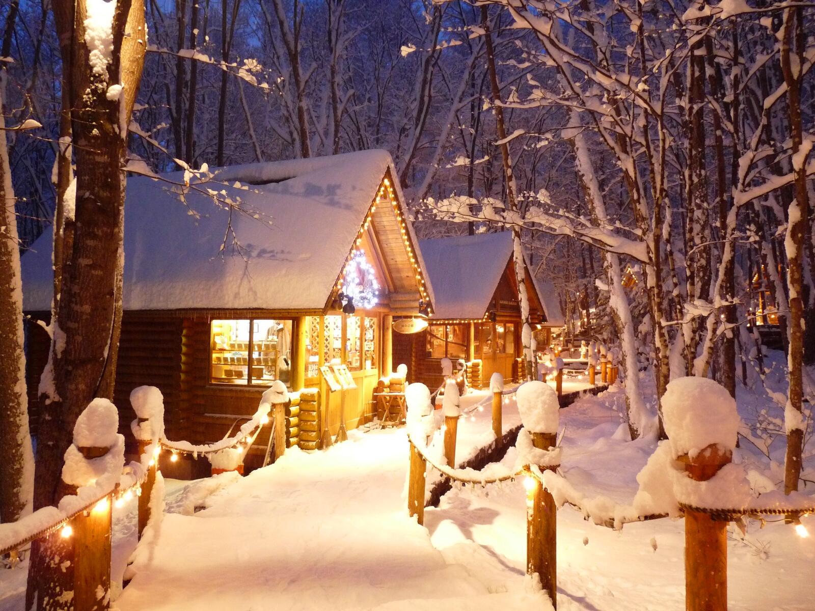 森の中に15棟のログハウスが連なるロマンチック・ショッピングエリア