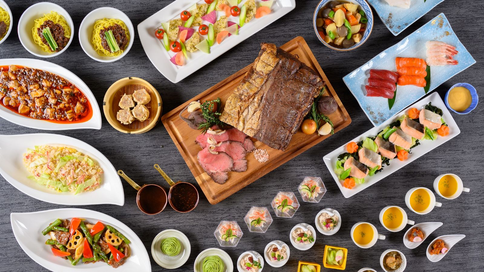 北海道食材をはじめとした国産牛のローストビーフや茹で蟹、握り寿司などさまざまな料理をお楽しみいだけます。