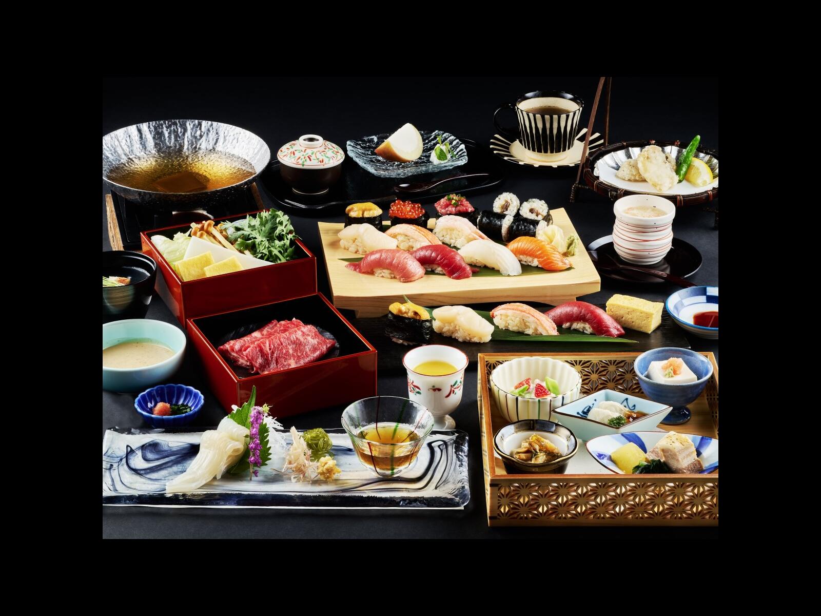 夕食はメインに道産牛しゃぶしゃぶと、お好きなネタをお好きなだけお召し上がりいただけるお寿司。