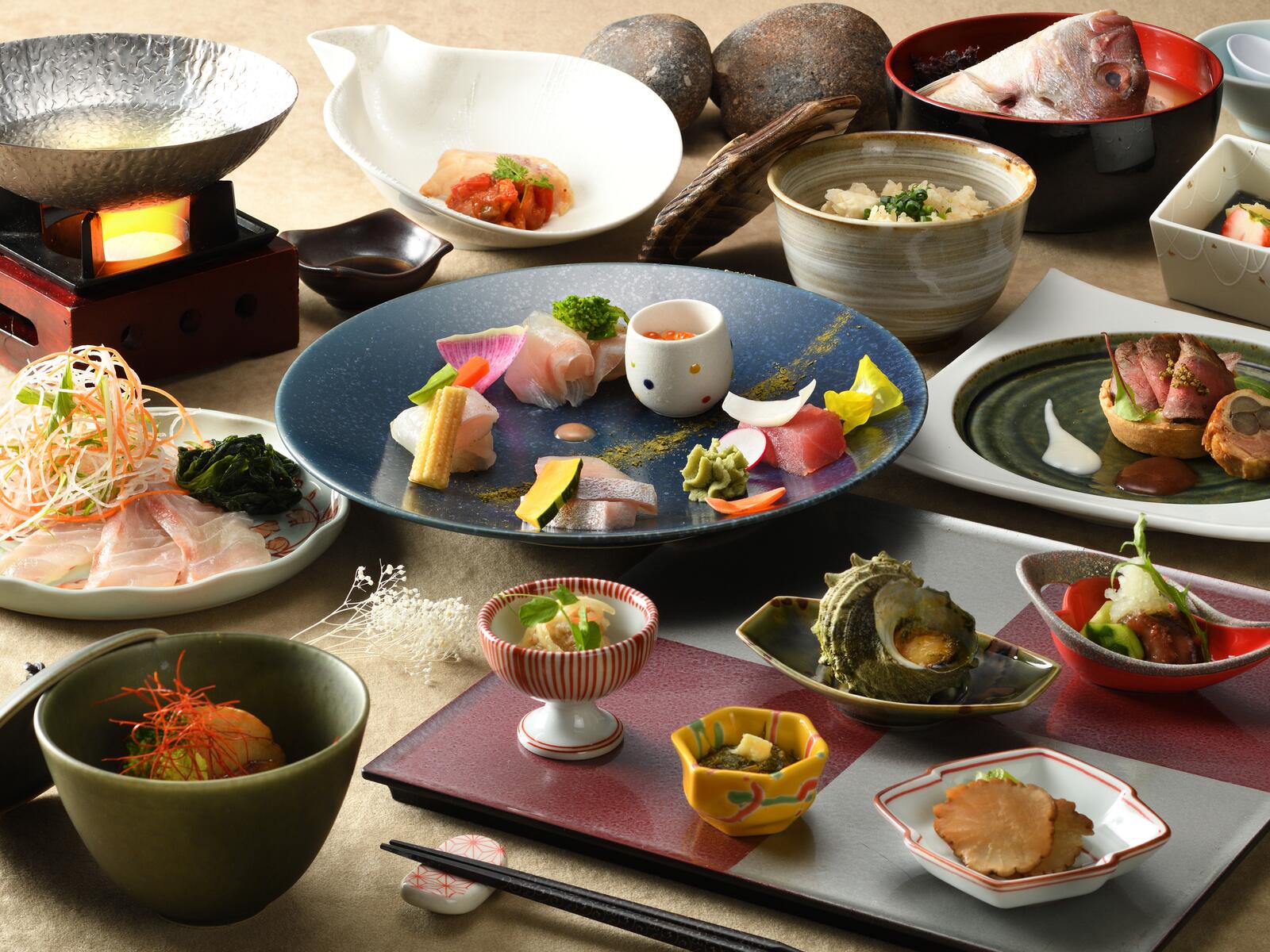 +plusプラン・夕食は迫力ある調理!男鹿名物「石焼料理」と季節の和食を楽しむ(基本料理)