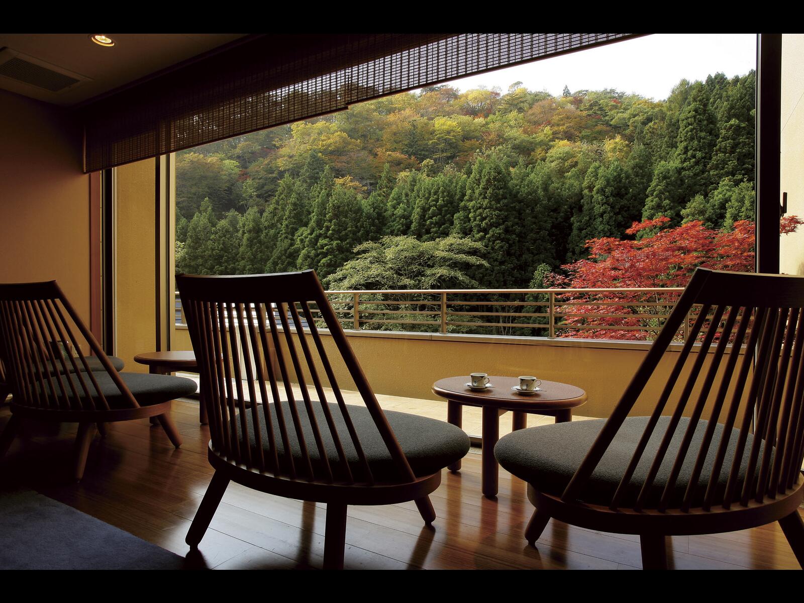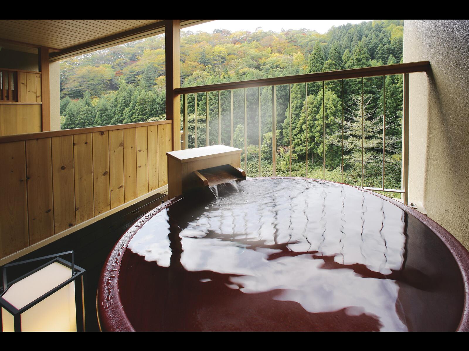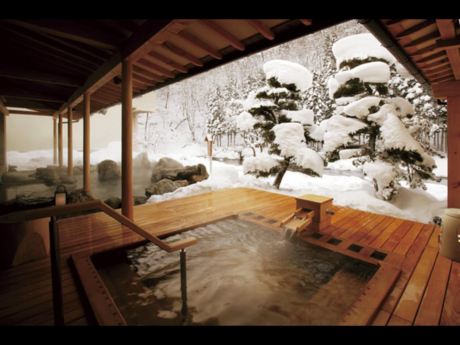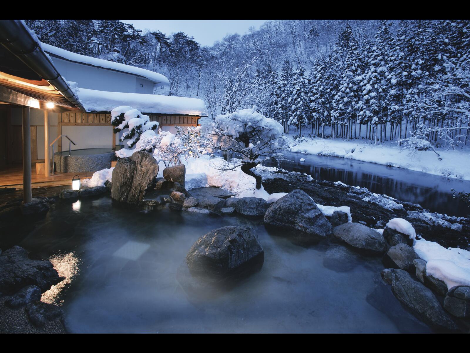 豊沢川の清流沿いに建つ全室源泉掛け流しの露天風呂付きリゾート旅館。川沿いには男女別の庭園露天風呂や足湯が有るプライベートを重視した旅館です。