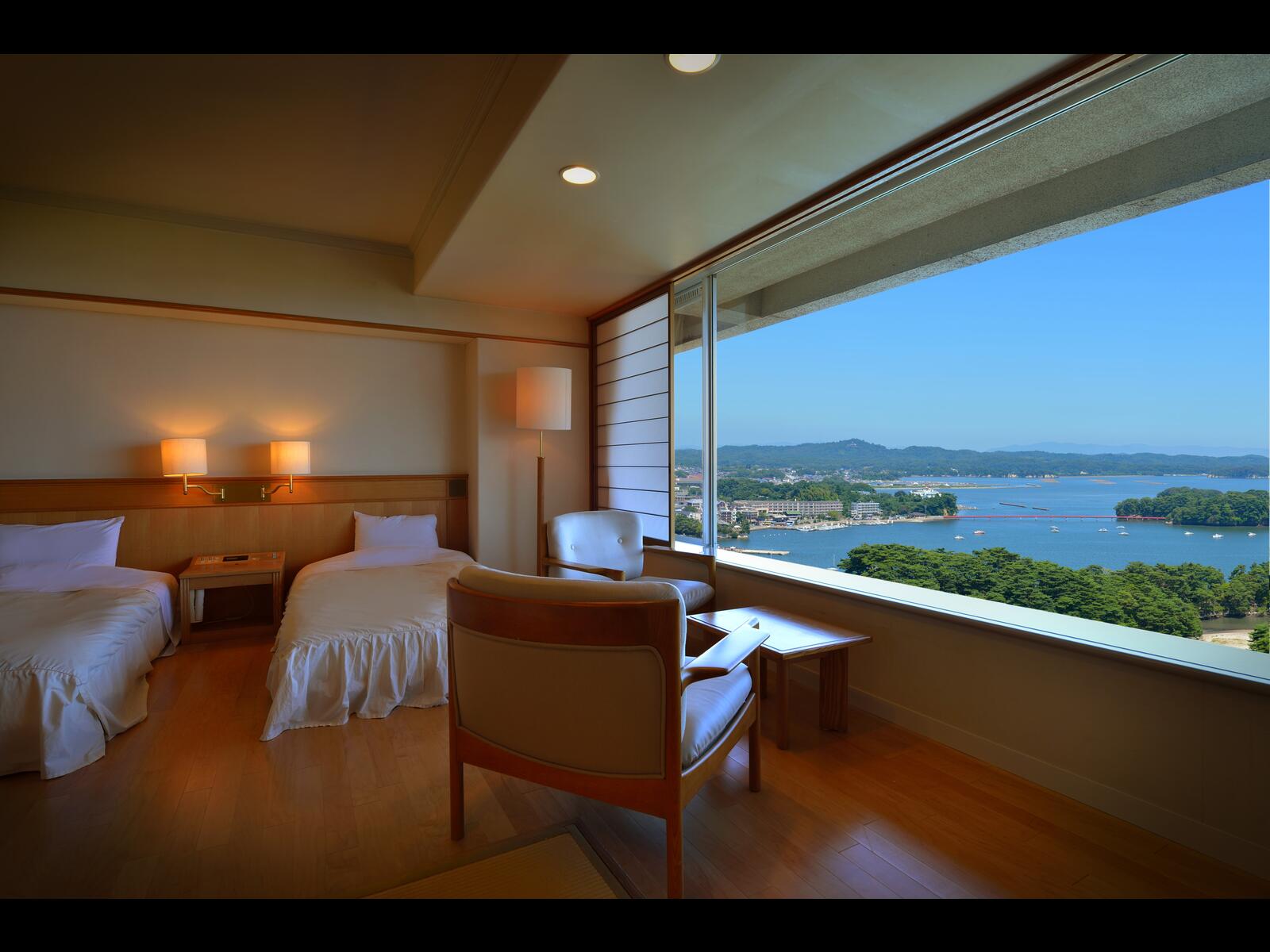 暖流と寒流が交わる太平洋の恵み「多種の魚介類」をふんだんに使った和食・洋食・中華料理と丘に建つホテルからの松島の眺望、感動のリゾートホテル。