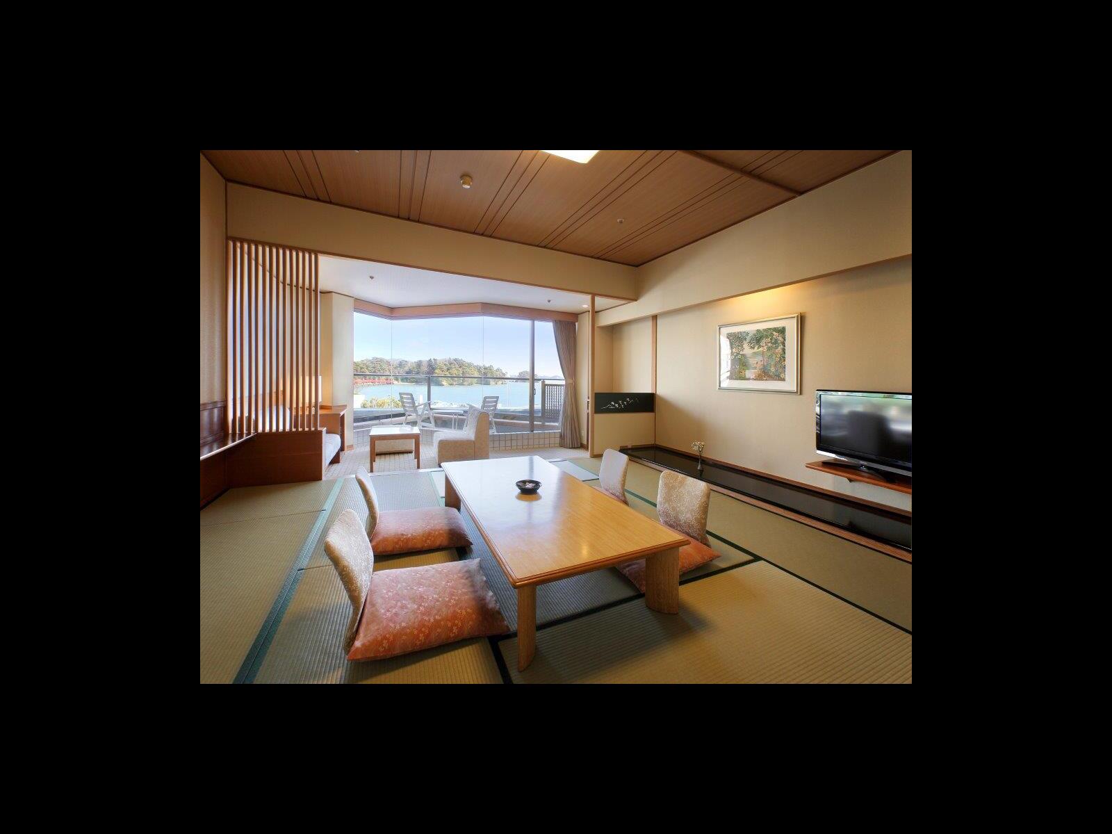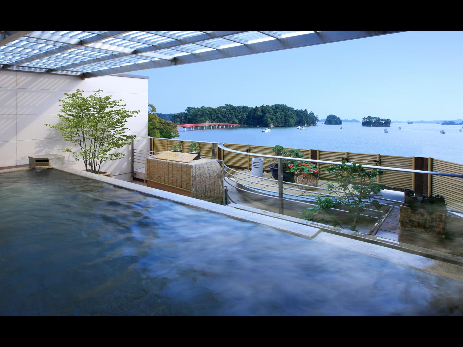 松島海岸の中心に位置する眺望随一のホテルです。周辺には、瑞巌寺や五大堂などの名所旧跡や観光施設が点在しており、観光の拠点としても最適です。