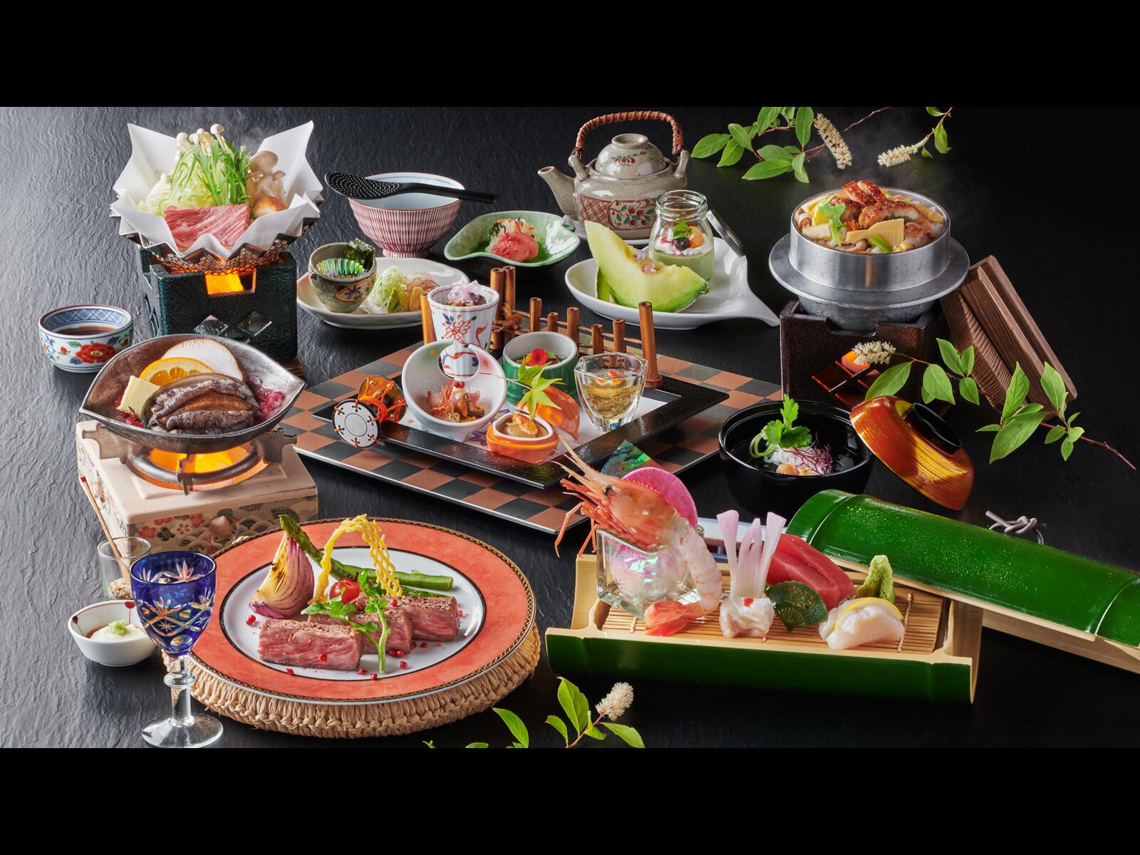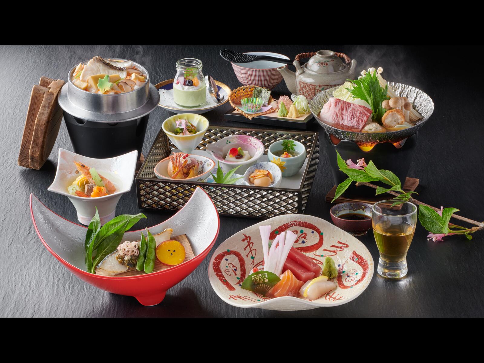 夕食は、宮城県の名工に選ばれた料理長が腕を振るう彩り豊かな会席料理は、目にも舌にも幸せを感じられ笑顔あふれるひとときをお楽しみいただけます