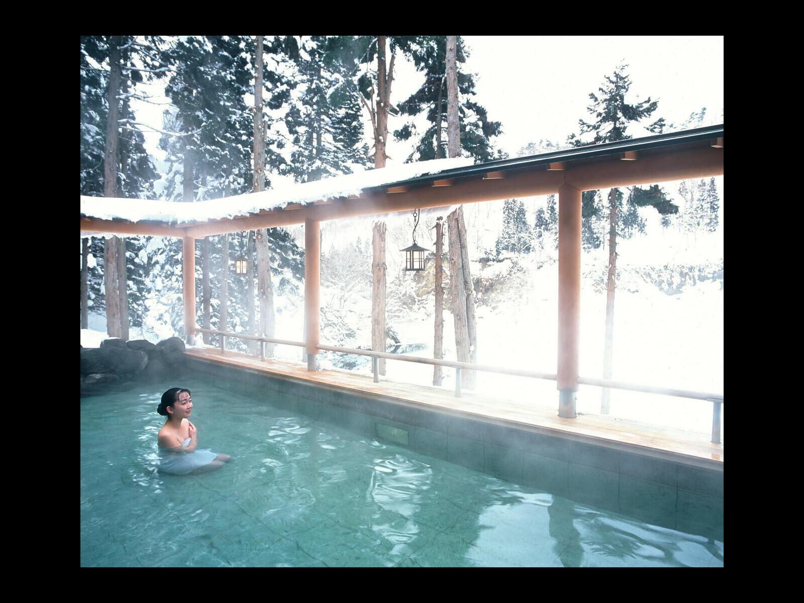 山々が織りなす四季の彩りと野鳥のさえずり、冬には雪の降る音を聞く。開放感あふれる露天風呂から大自然を眺める癒しのひととき。