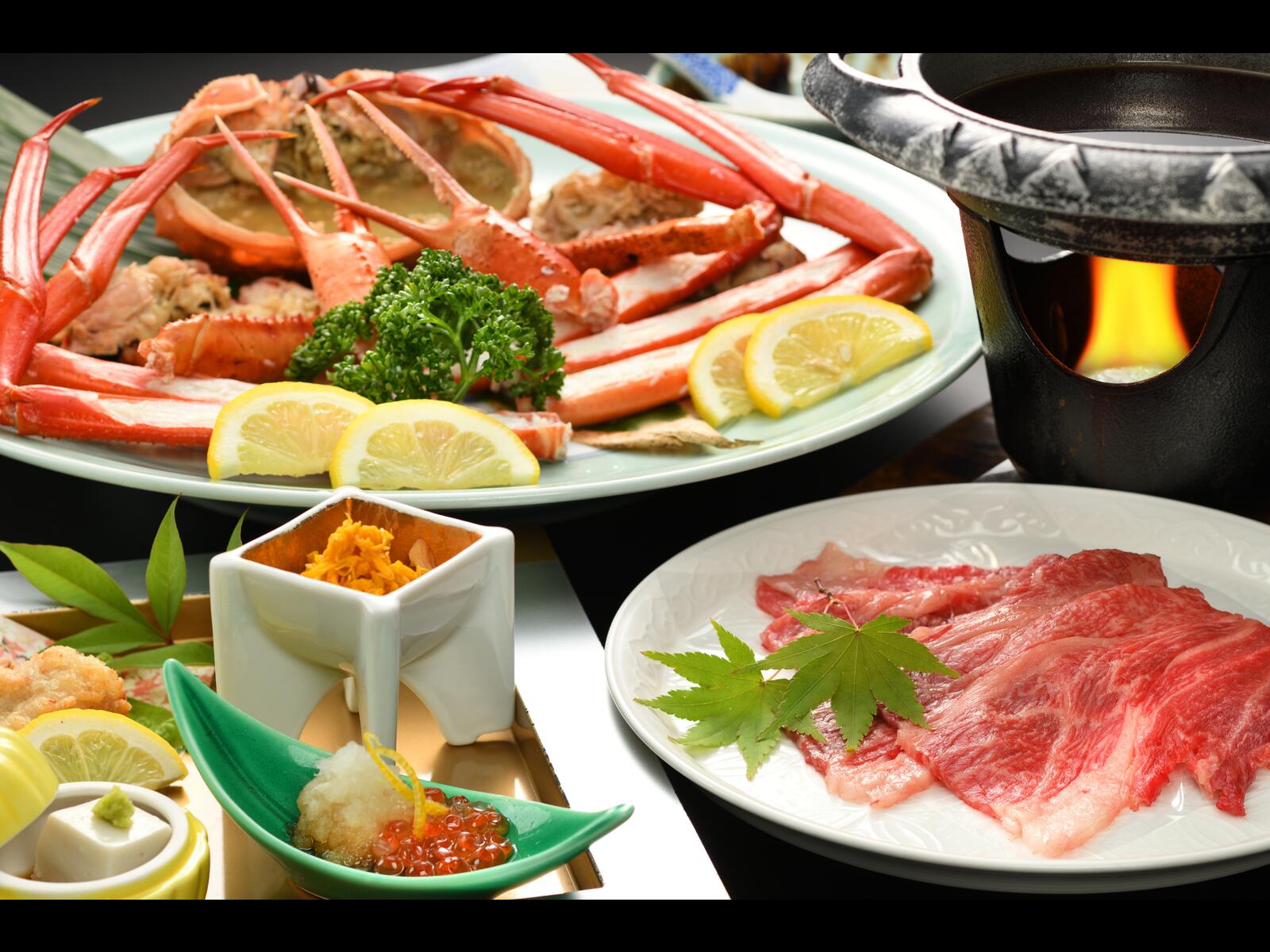 +plusプラン・(早期45)夕食は旬の地魚料理と山形牛すき焼き、天喜紅蟹付和会席(滞在中1回/おとなのみ)