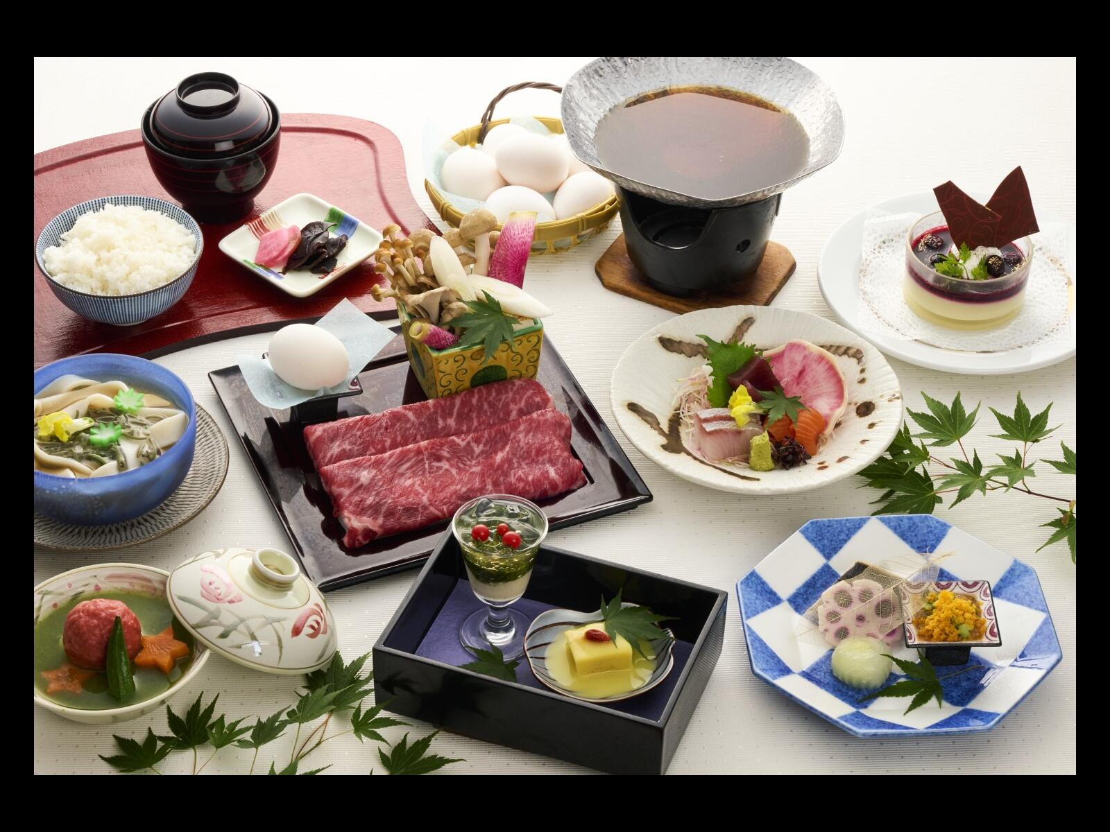 夕食は旬の味覚の和食膳+上州牛の陶板焼き(一品追加)ウェルカムコーヒー付(おとなのみ/滞在中1回)