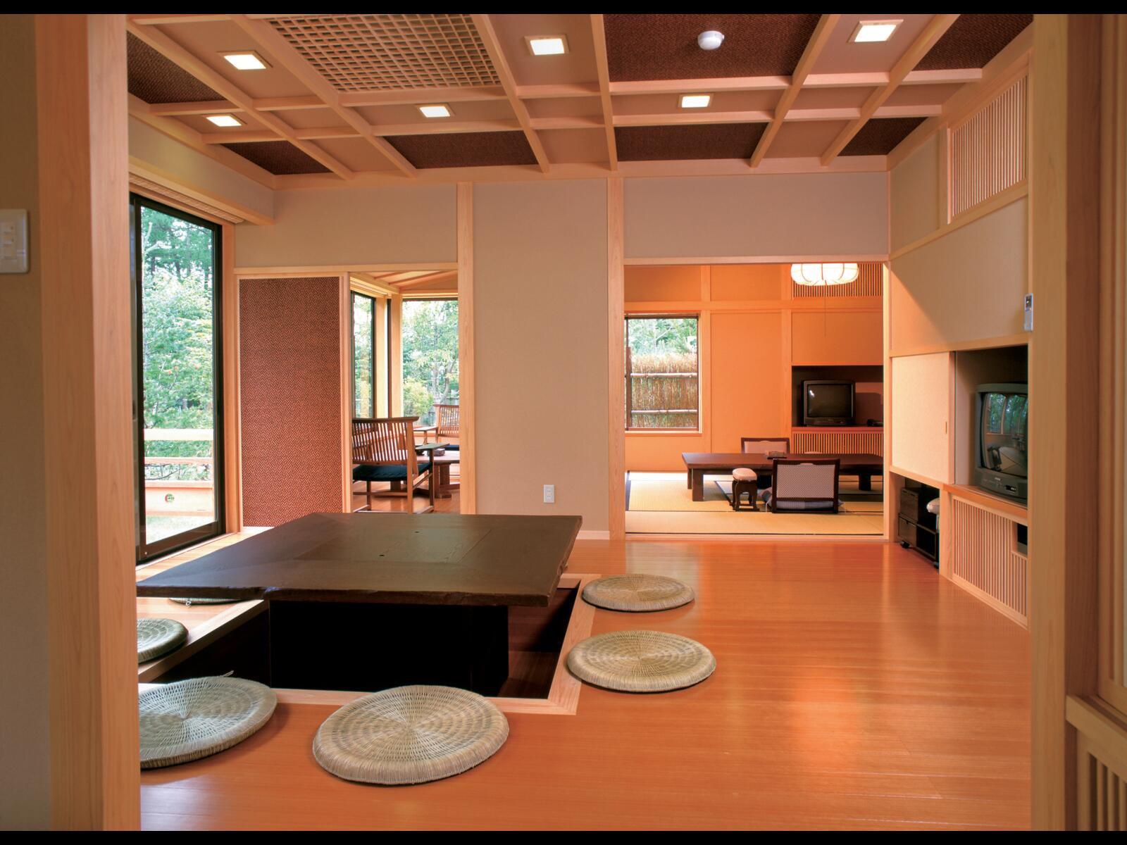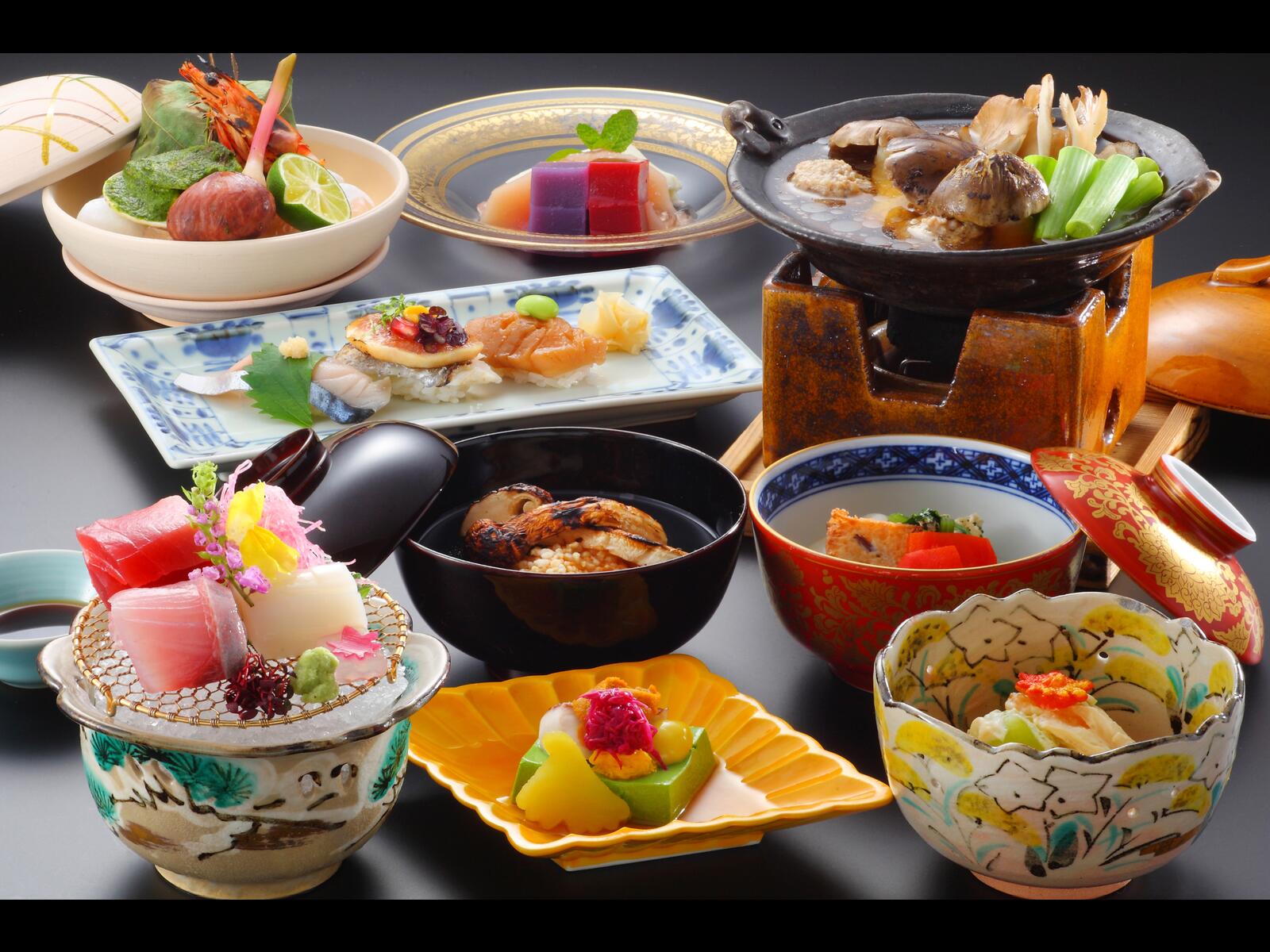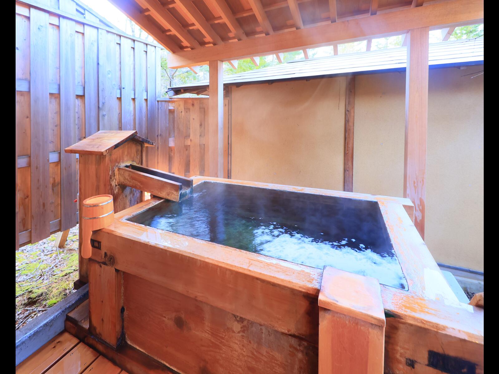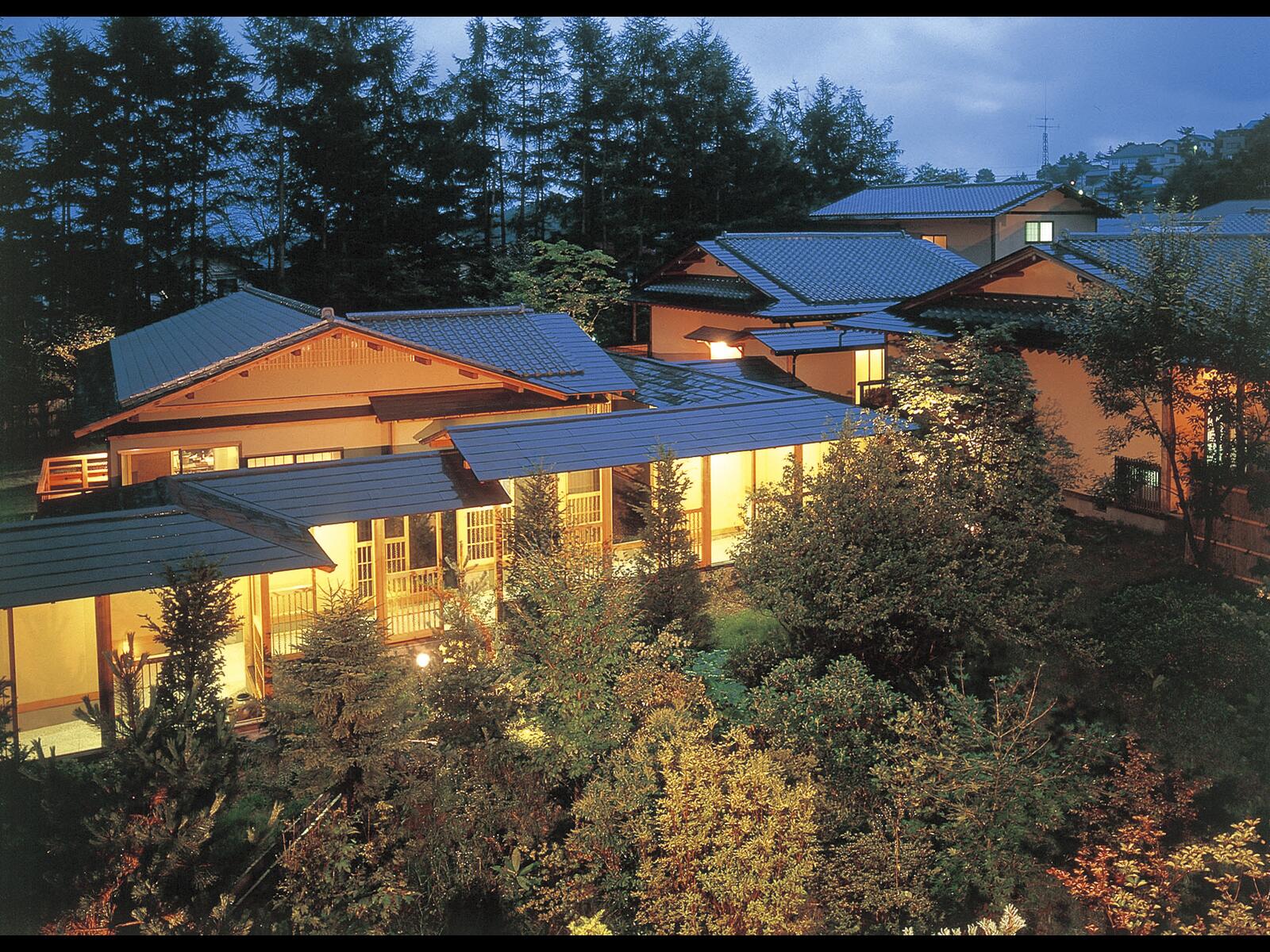 5000坪に10部屋広い自然庭園と築地より仕入れの食材を使用し、月替りの懐石料理や器、露天風呂付離れ家や貸切露天風呂等もあります。