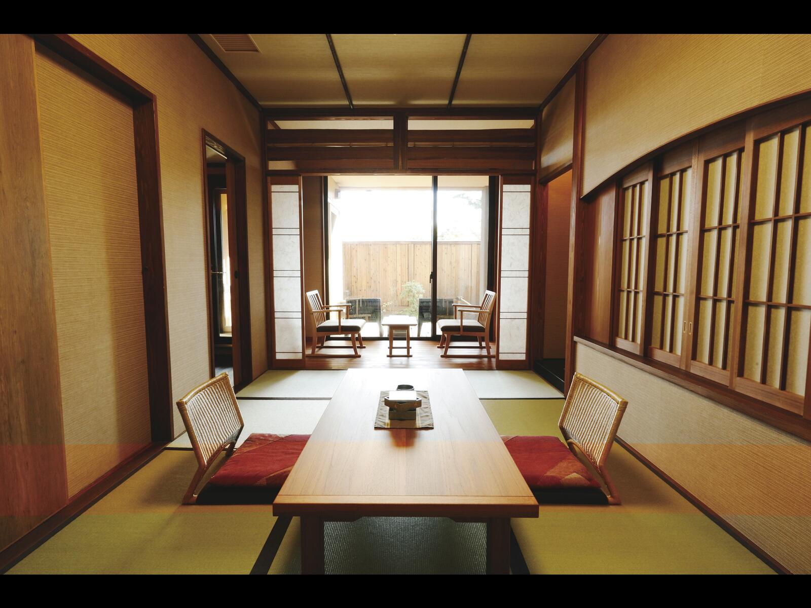 全室に天然温泉が満たす専用露天風呂を配したワンランク上の湯宿♪素足で過ごせる安らぎの空間!