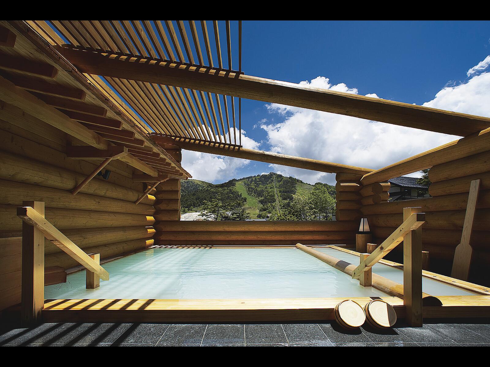標高1800メートルのたなびく雲海を見下ろしながらの露天風呂の開放感を大自然に抱かれながら、心ゆく迄おくつろぎ下さい。
