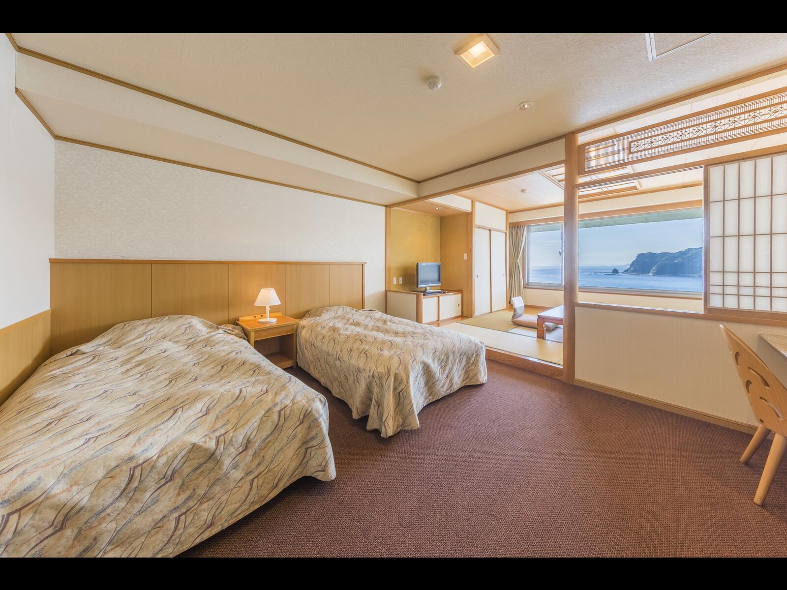 お部屋:◆【喫煙】和洋室(6畳+ツイン)★オーシャンビュー 6畳35平米