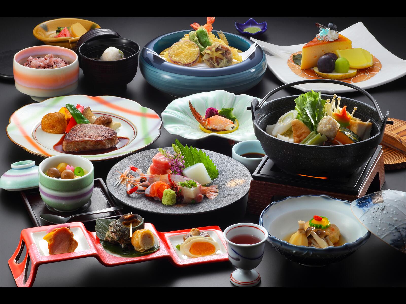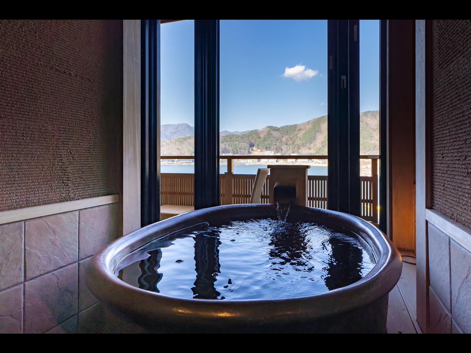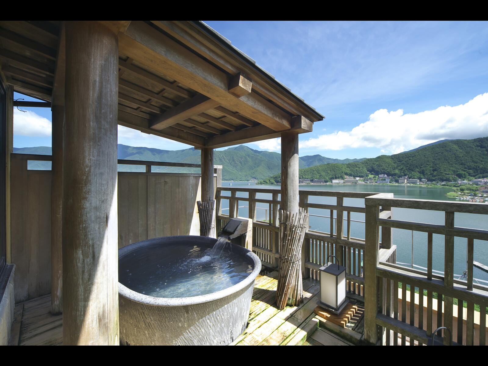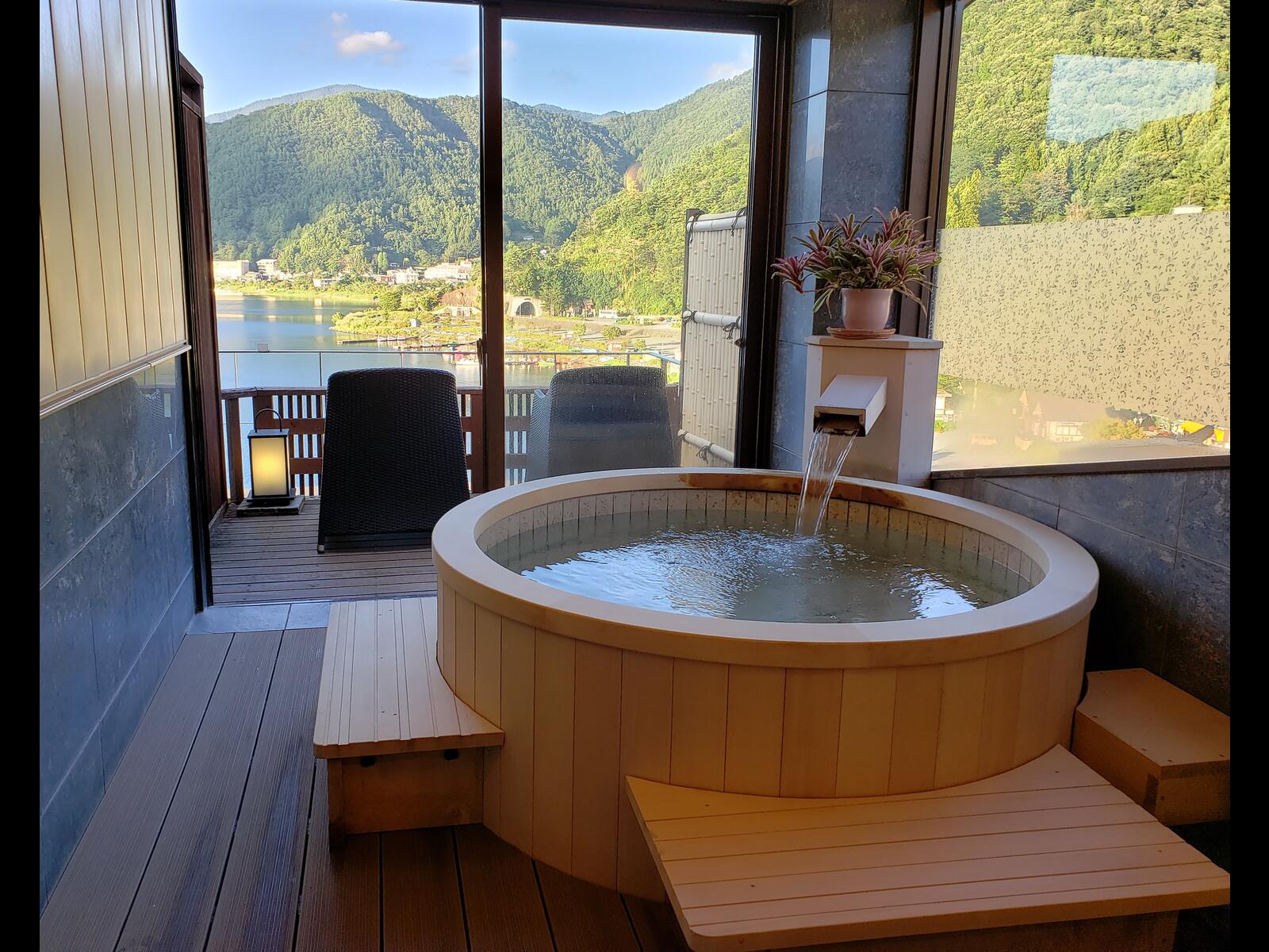富士の名湯をお楽しみ頂ける各種お風呂・展望貸切風呂に加え、露天風呂付客室も増設。旬を盛込んだ花水庭会席も好評です。