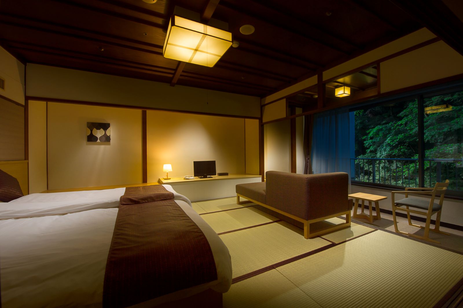 お部屋:【禁煙】温泉内風呂付川沿いの和室ハリウッドツイン(定員3名) 10畳