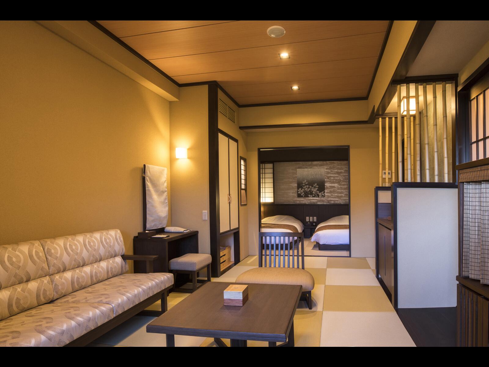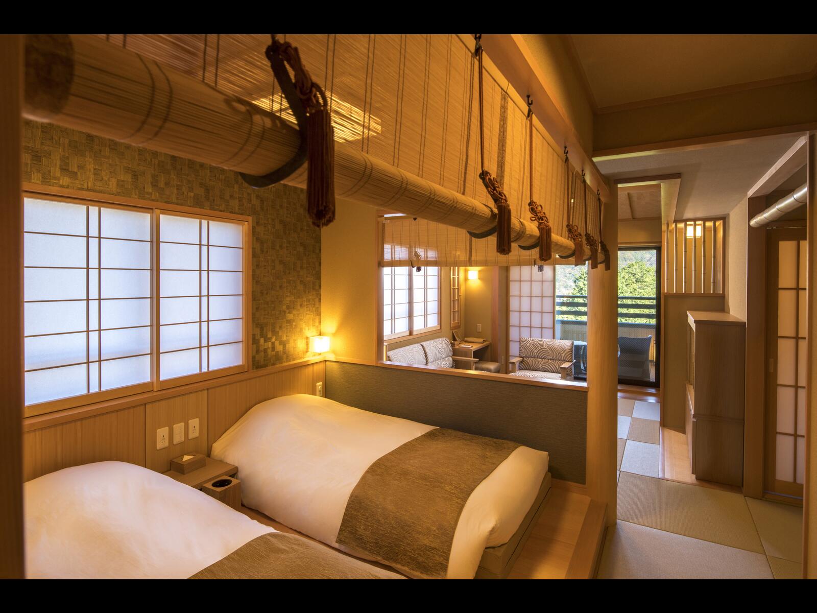 お部屋:和ツインデラックス 2ベッド 禁煙 庭側 露天風呂付 50平米/露天風呂付(内風呂なし)