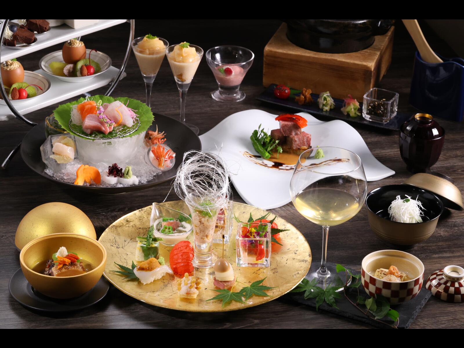 夕食は北海道の新鮮な魚介類と地場産食材を合わせた懐石料理/ワンドリンク付(滞在中1回)