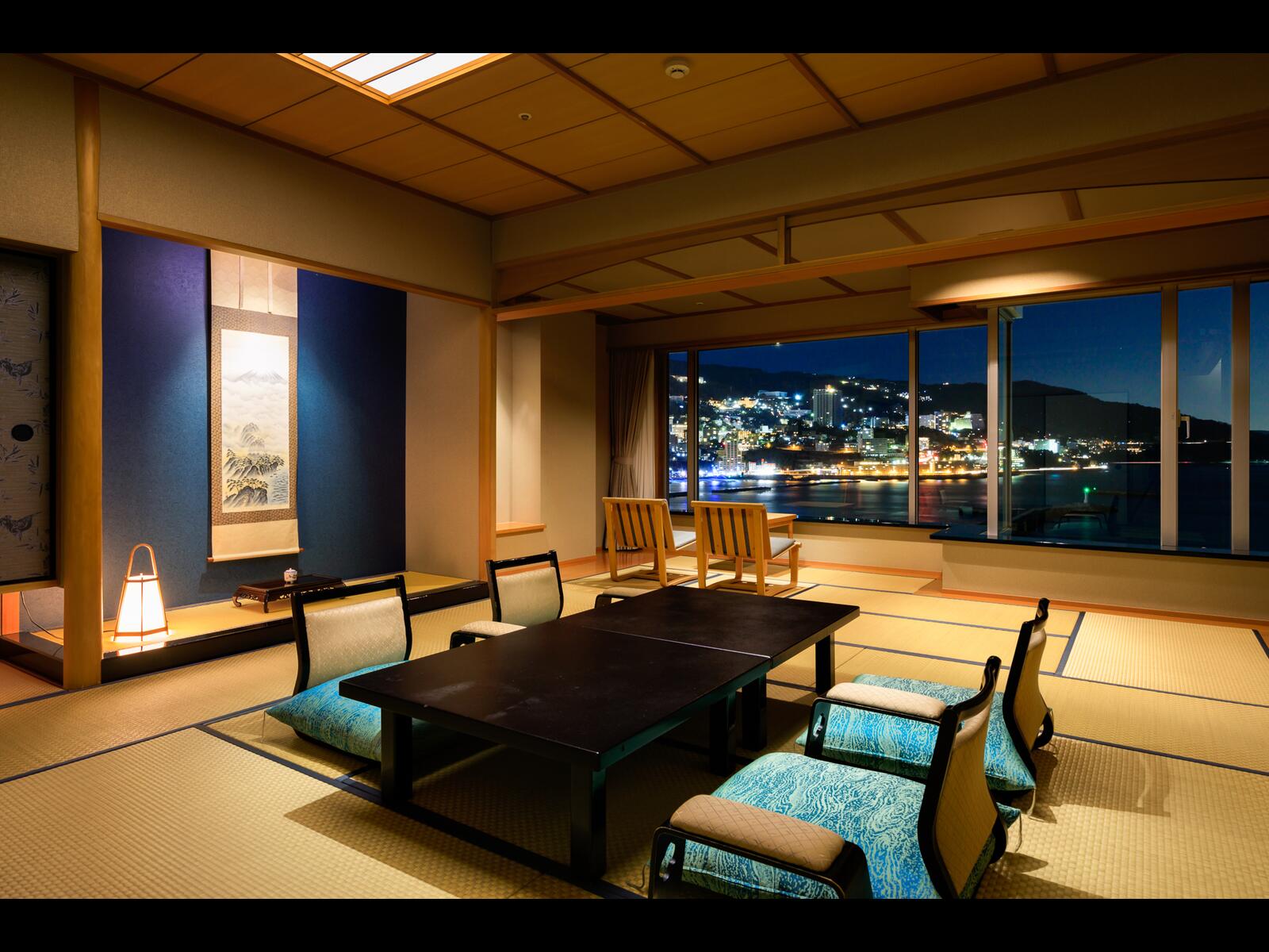 この度は熱海後楽園ホテルにご宿泊くださいまして、誠にありがとうございます。 今回お泊り頂きましたタワー館の和室は、18畳一間の広々としたお部屋と窓一面に広がる相模灘の絶景が自慢の当ホテル人気のお部屋タイプでございます。お客様にも景色や雰囲気をお楽しみ頂けたようで、お褒めの言葉を嬉しく思いながらコメントを拝見いたしました。2019年3月にオープンした新館のオーシャンビュールームも、備え付けのバルコニーから煌びやかな夜景をお楽しみ頂ける、おすすめのお部屋タイプでございますので、またの機会がございましたら、是非ご検討くださいませ。お褒めの言葉に甘えることなく、さらにお寛ぎ頂けるサービスの提供に取り組んで参ります。 この度はご投稿ありがとうございました。