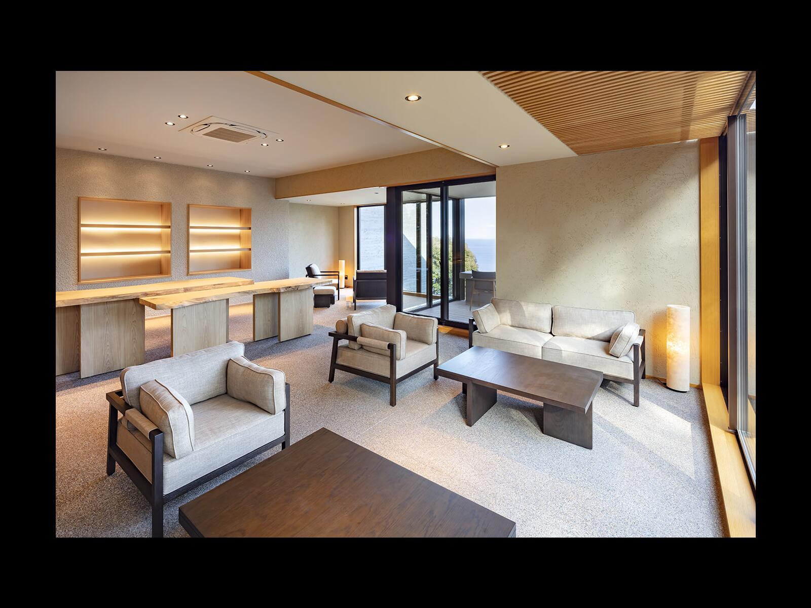 広大な相模湾の水平線パノラマと眼下に広がる豊かな木々。自然の息吹と木の温もりが織り成す、シンプルながらも計算された美しい客室は洗練されたオーダーメイド家具と無駄を排したデザインからなり天然温泉露天風呂とヒーリングテラスを備え、そこから眺める風光明媚な景色は、まさに何一つ手を加える必要のない美しい自然そのもの。華美な演出や装飾はあえてせず、適切な距離感で食材が持つ本来の魅力をシンプルに伝えるお料理。温度、時間、湿度を細かく管理し、その食材が「一番美味しい瞬間」をお届けします。【無為自然】その名の通り、喧騒を忘れあるがままの自然にあるがままの自分と向き合うそんな時間をお過ごしください。