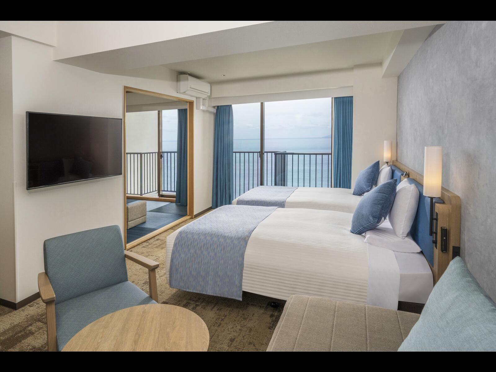 全ての部屋がオーシャンフロント&39平米以上の広々客室。大切なワンちゃんと一緒に泊まれるペットルームやドッグランもございます。