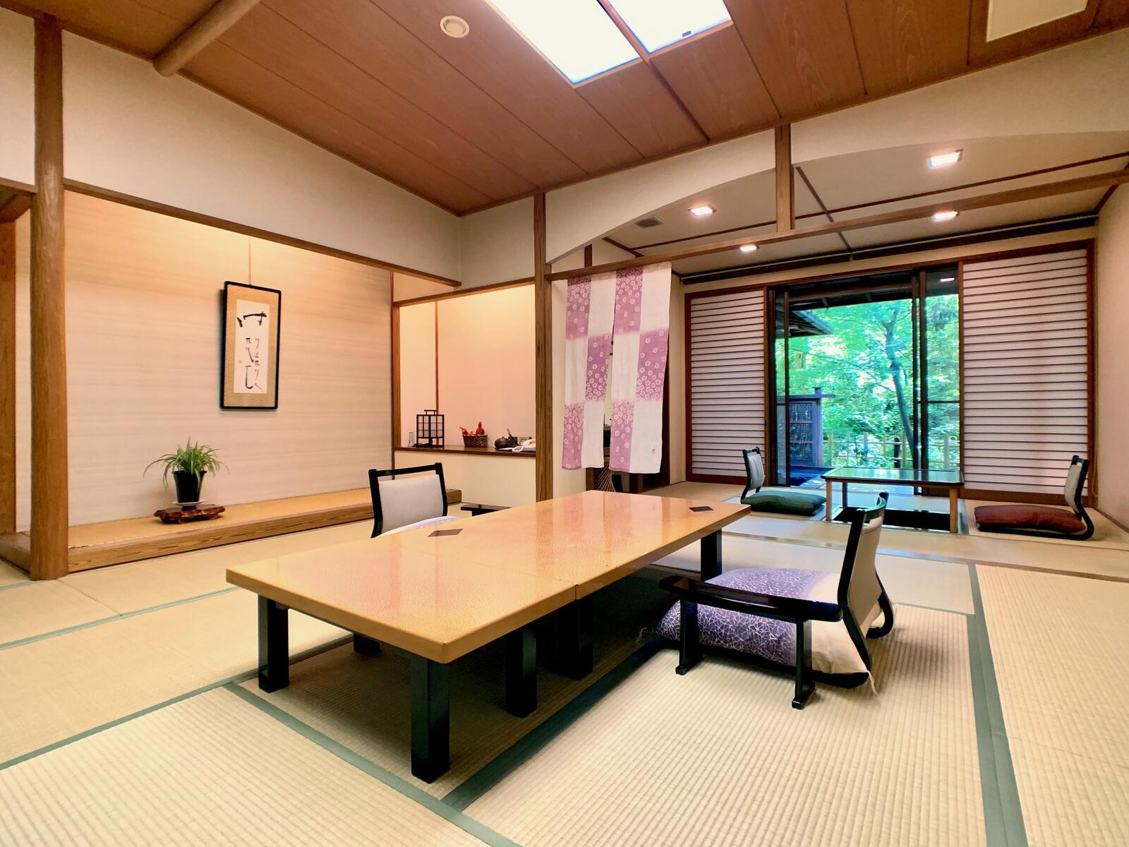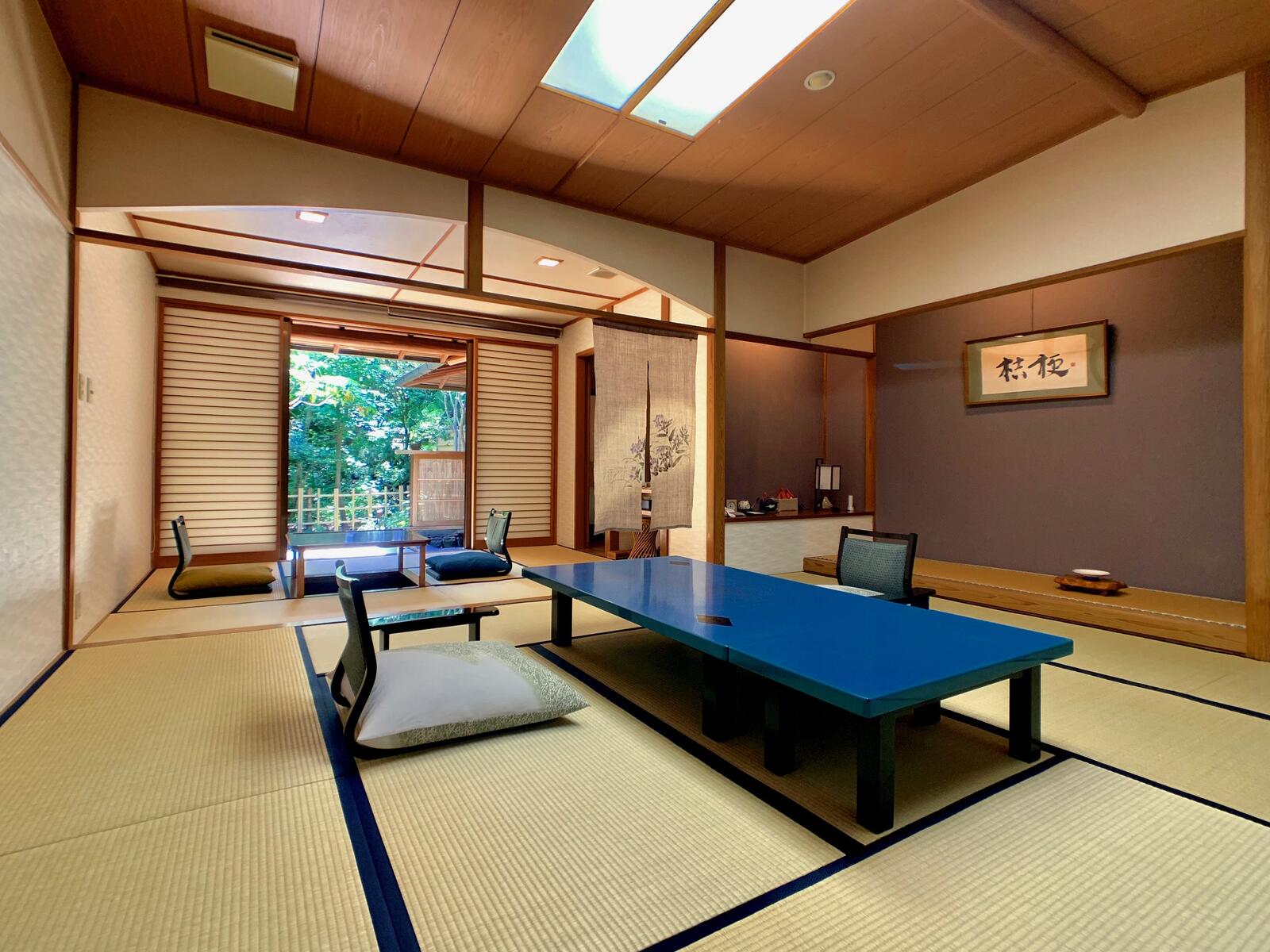 客室は本畳前室2畳、本間12.5畳、掘りごたつの間6畳、濡れ縁、露天風呂、内風呂、トイレ付きです。
