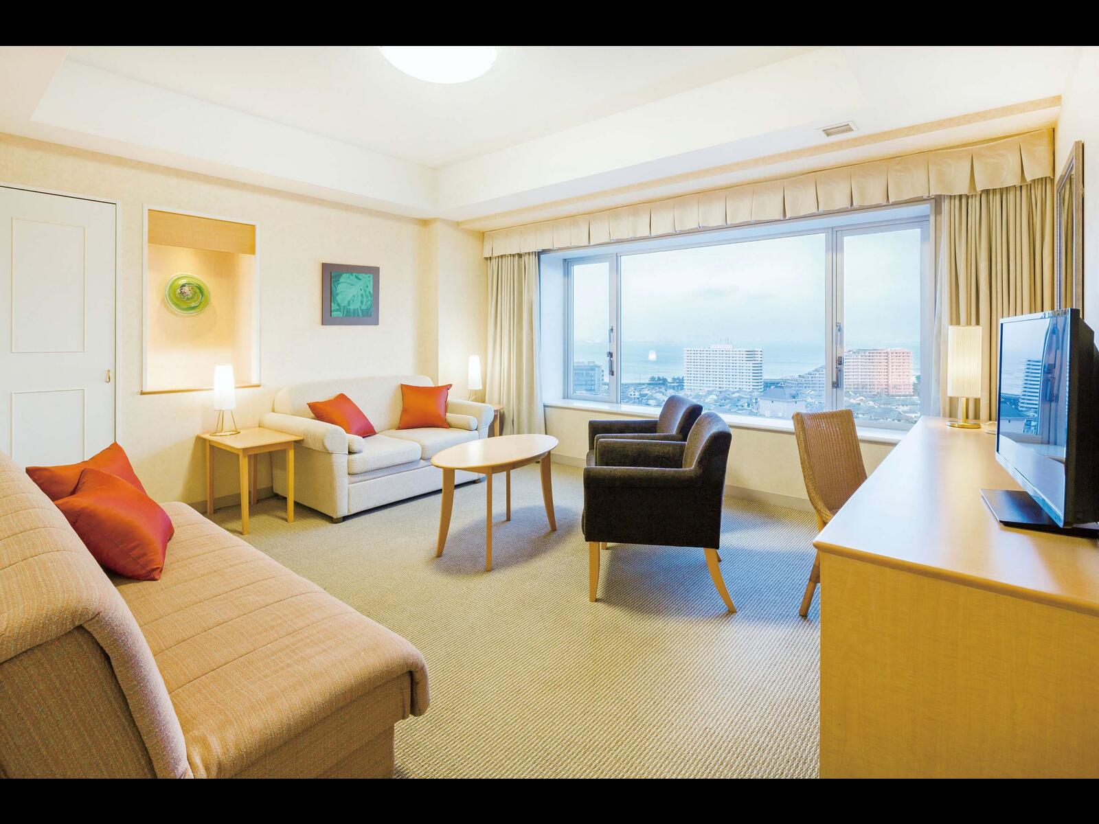 海が見える広いお部屋で3世代5人でゆっくりやすめました。インテリアもオシャレで、またお風呂からは外を眺められました。 宿泊当日はちょうど中秋の名月で、眺めながら湯船に浸かりました。 スタッフも皆さん感じ良く快適に過ごせました。