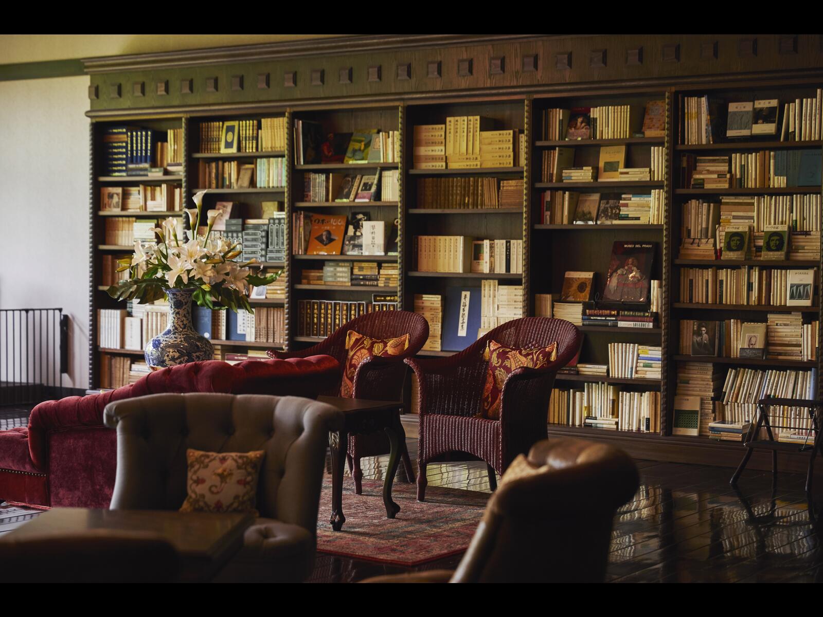 渓谷の隠れ家的【大人の寛ぎおこもり宿】3万冊の蔵書Lounge&Barでは、16時までのチェックインでウェルカムドリンクをご用意。