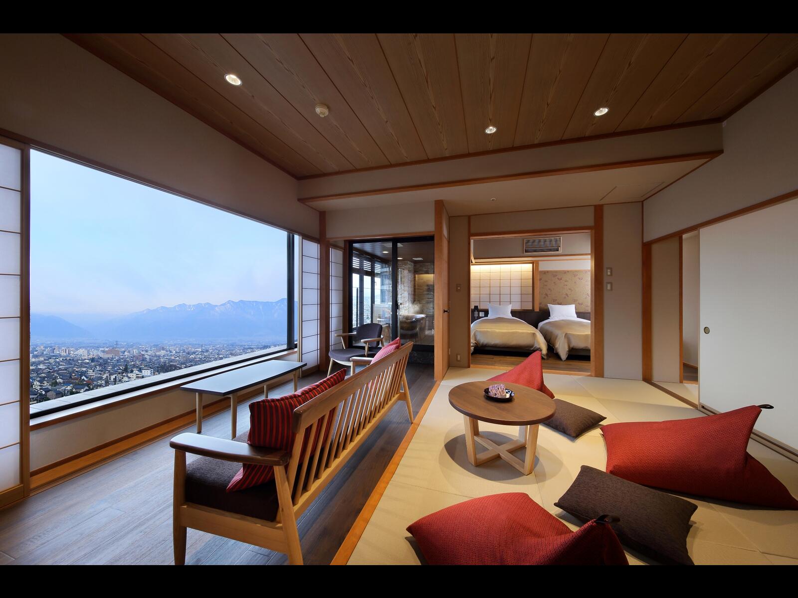 お部屋:中央殿 露天風呂付和洋室 2ベッド 禁煙リビング付 7.5畳+洋間/露天風呂付