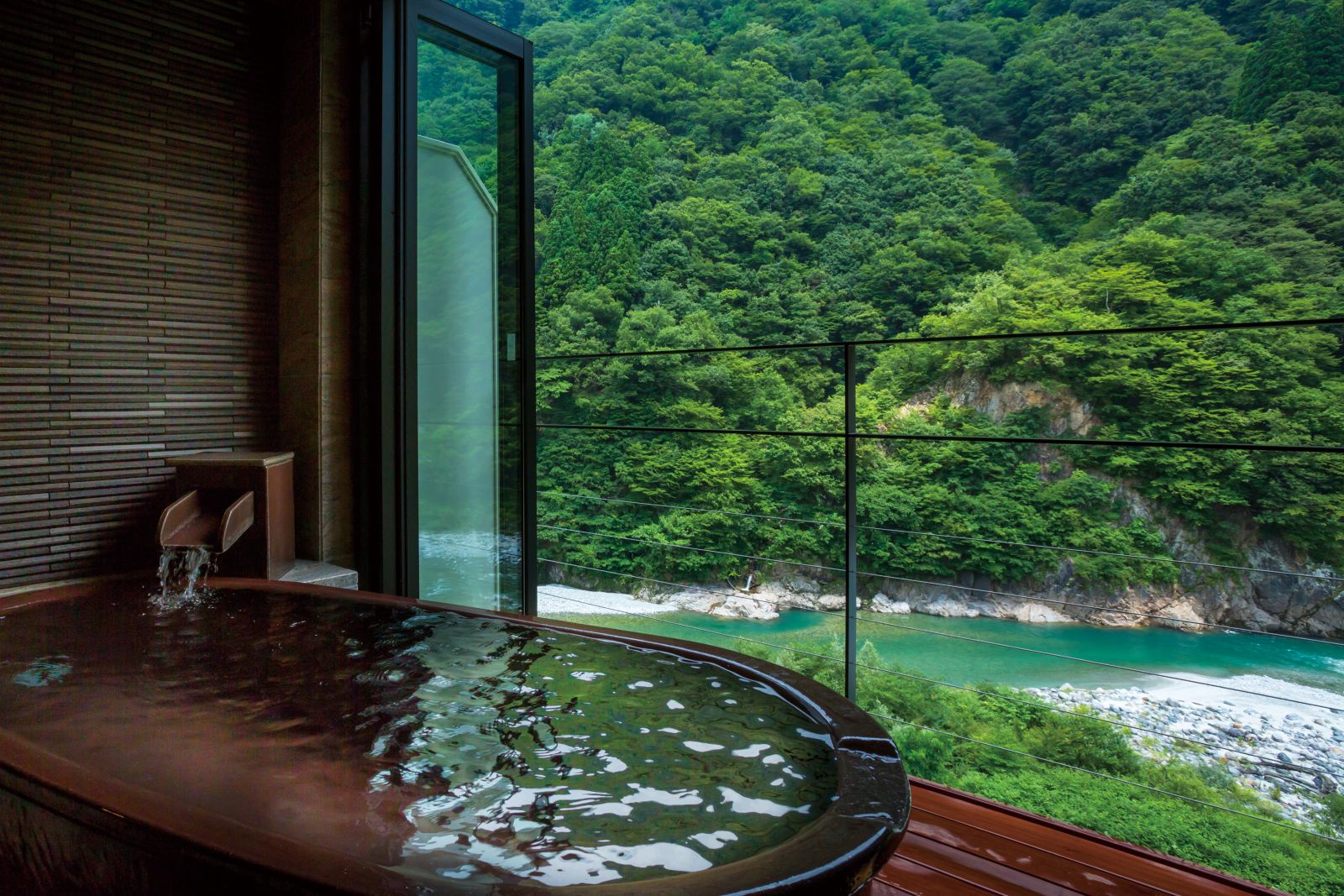 代々受け継がれた上質なお料理と一枚の絵画のような樹齢四百年の総檜露天風呂。雄大な黒部峡谷の絶景とともにやすらぎの時間をお過ごしください。